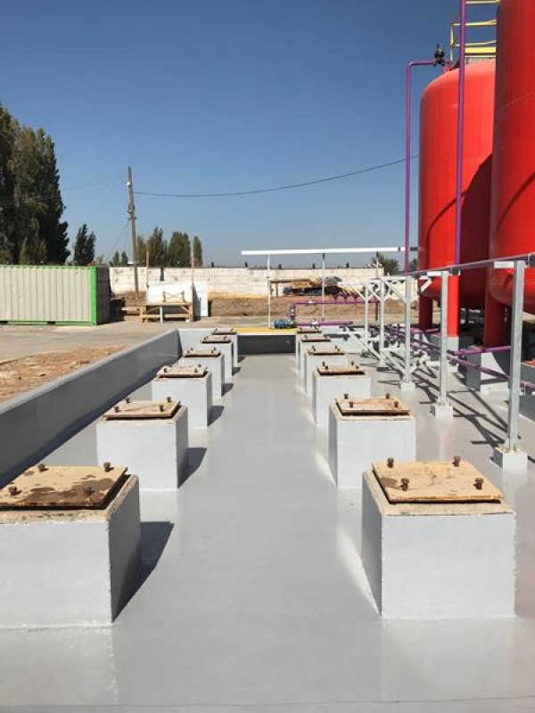 Two coats of CHEMCLAD XC were applied to the containment area containing sulfuric acid tanks. The second containment area has tanks that contain sodium hydroxide. Two coats of CHEMCLAD GP were applied there. Both products provide outstanding chemical resistance to the chemicals they were chosen for.